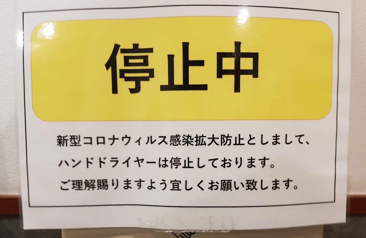「新型コロナウィルス感染拡大防止としまして、ハンドドライヤーは停止しております。」