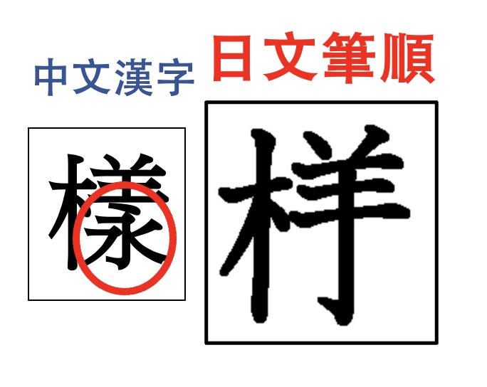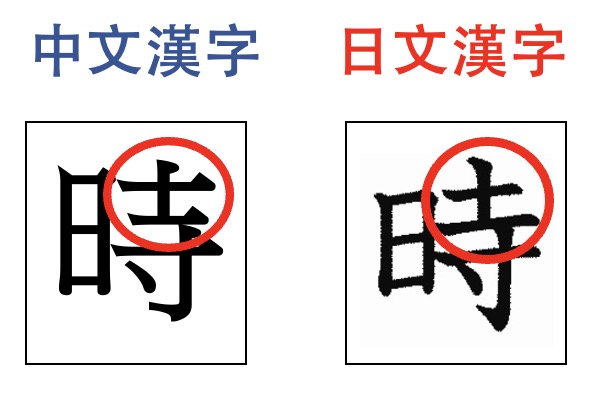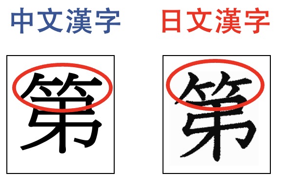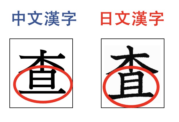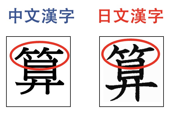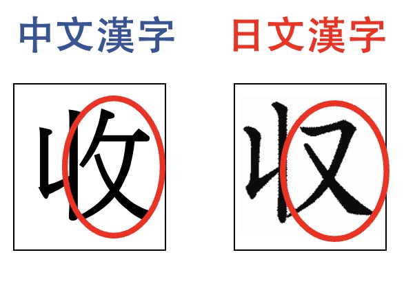 中文上面是右上往左下撇下來,但日文則是「一橫」,角度是完全不一樣的