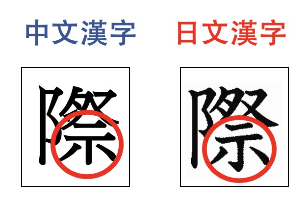大家有發現這五個中文日文漢字是長得不一樣的哦!