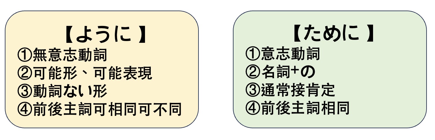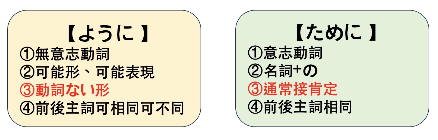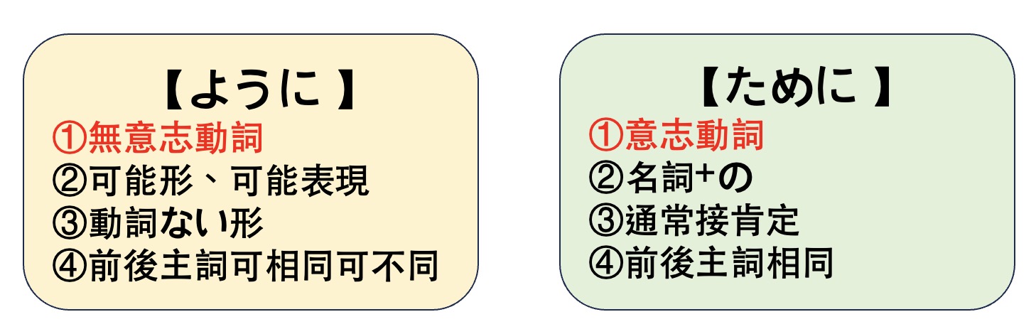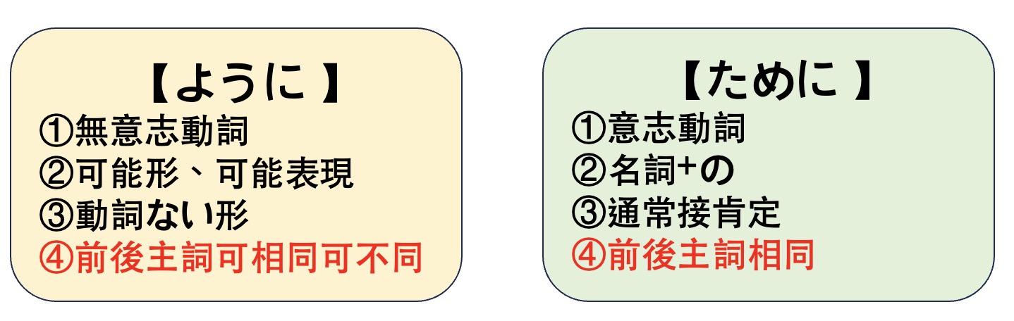 所以從「語感」就可以知道ように跟ために為什麼會衍生出上面4條公式了!