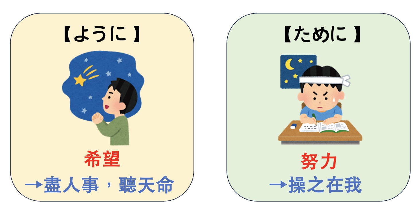 不能控制的情況下用「ように」,該做都做,最後就剩老天爺能不能讓你達成了