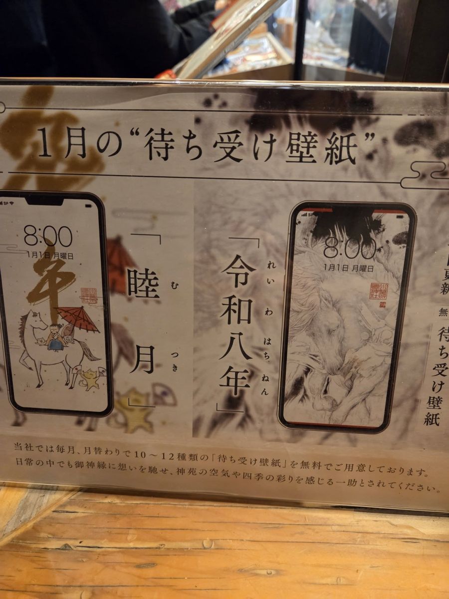 「1月の『待ち受け壁紙(まちうけ かべがみ)』」,意思是「一月的手機待機桌布」。