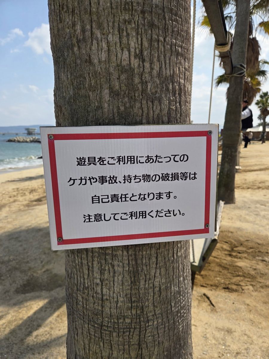照片中的句子「遊具をご利用にあたっての」就是「在使用遊樂器材時的~」的意思。