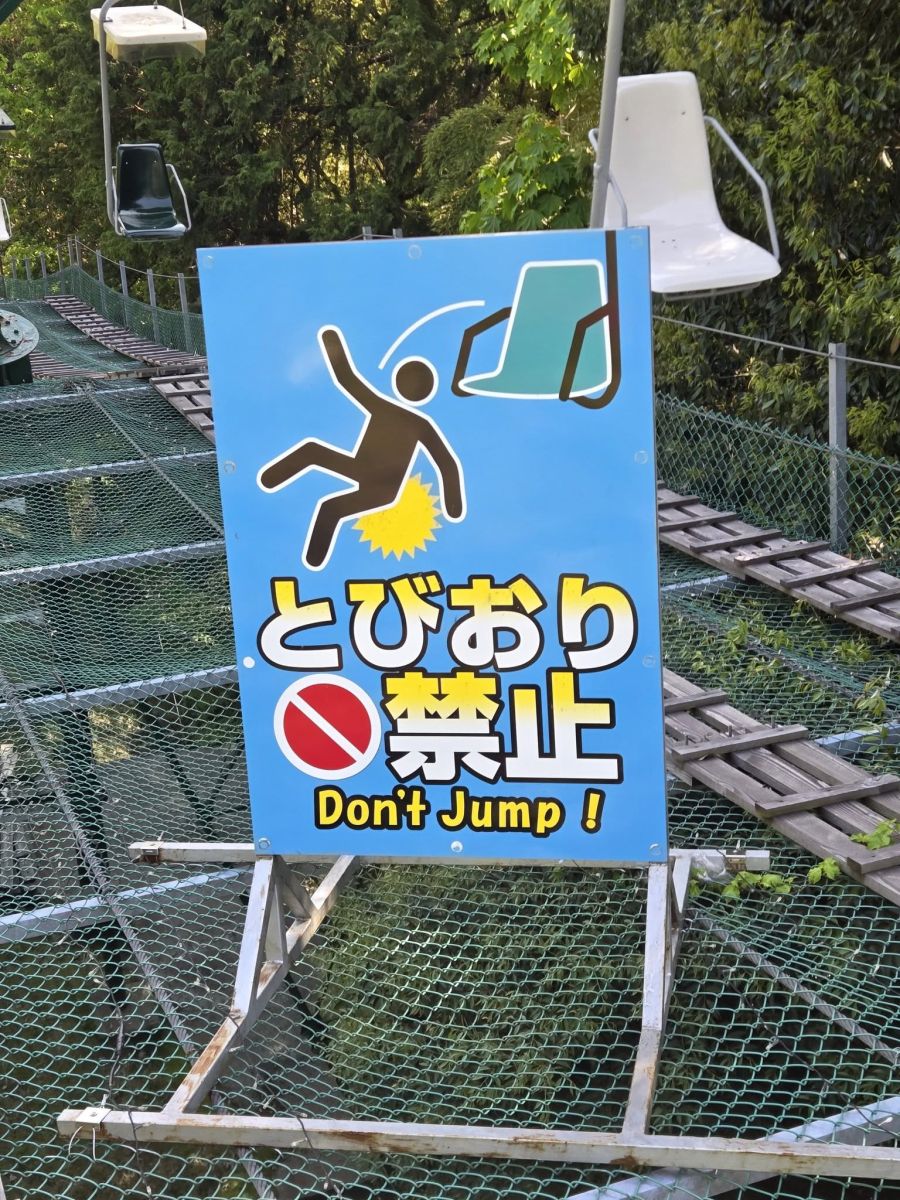 這張照片是在京都的天橋立(あまのはしだて) 搭乘纜椅(リフト)時拍到的安全告示牌。