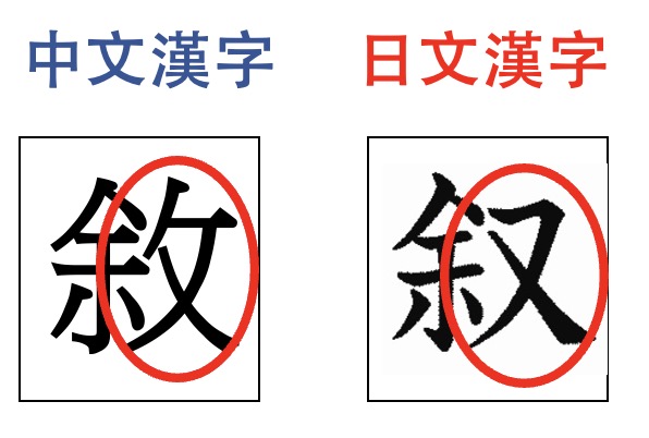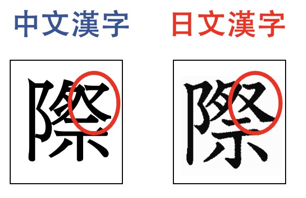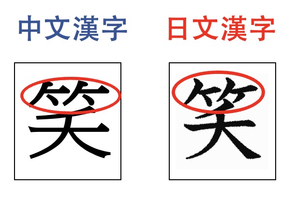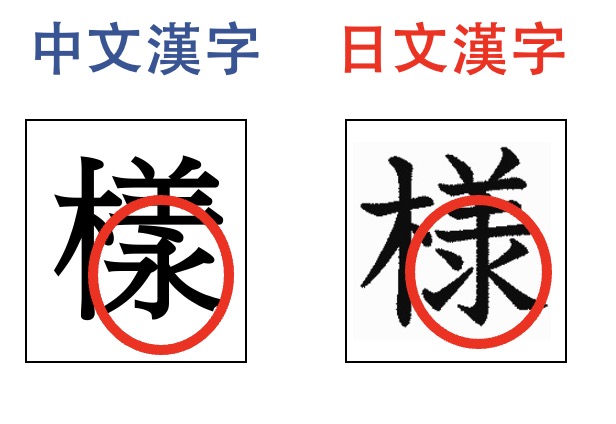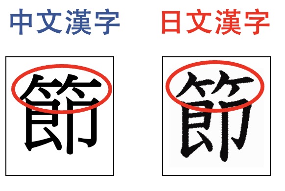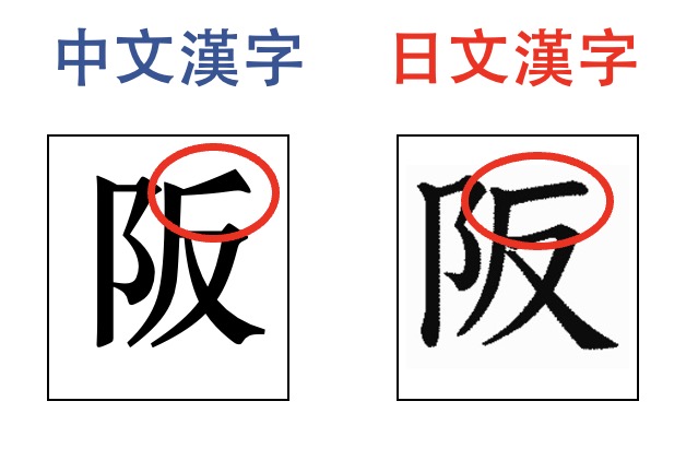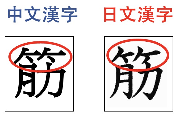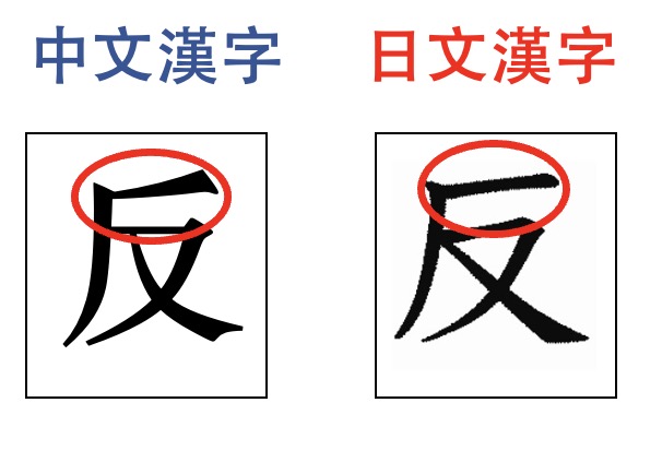 中文上面是右上往左下撇下來,但日文則是「一橫」,角度是完全不一樣的