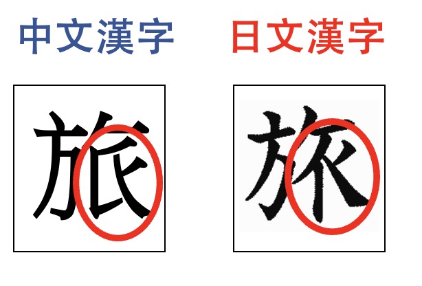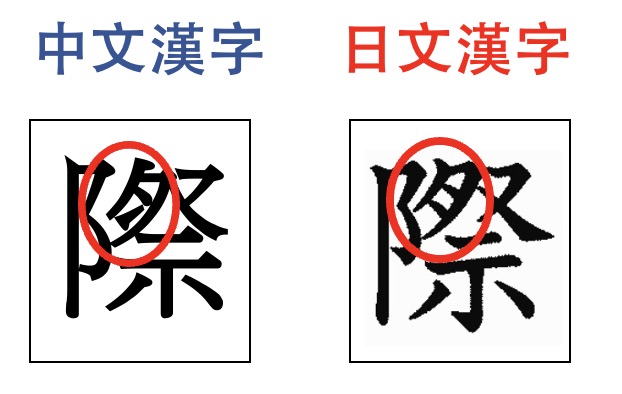 大家有發現這五個中文日文漢字是長得不一樣的哦!