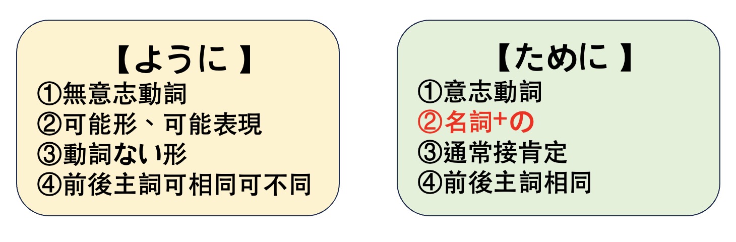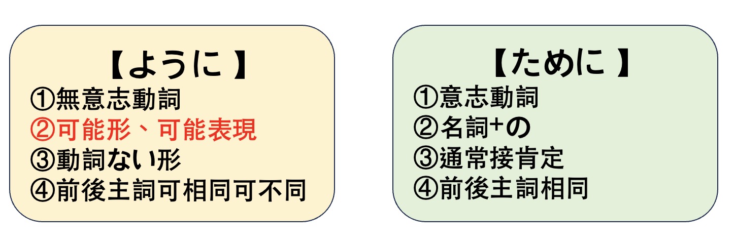 所以從「語感」就可以知道ように跟ために為什麼會衍生出上面4條公式了!