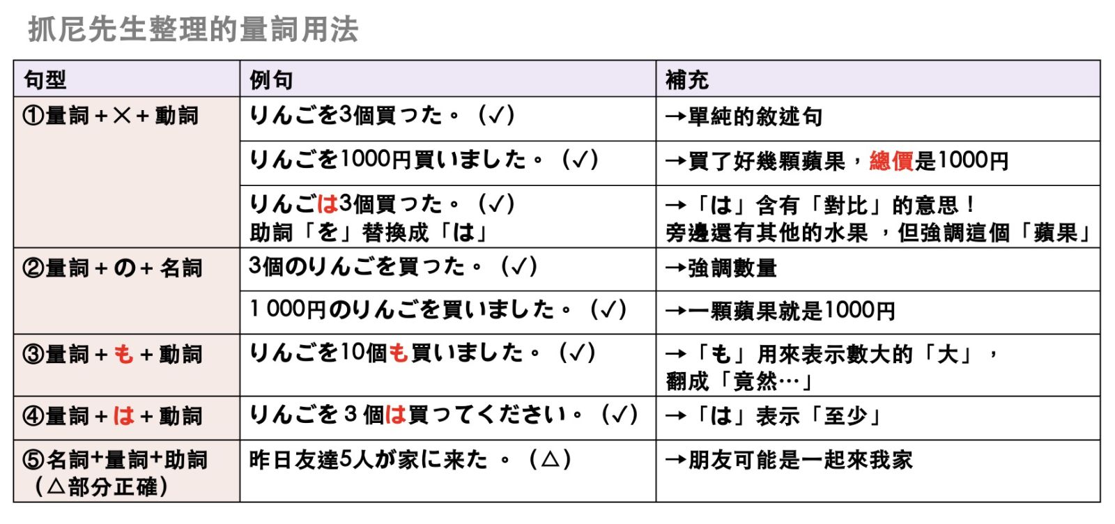 其實我們只要記得「把『量詞』當成『副詞』使用」,很多問題就可以迎刃而解了。