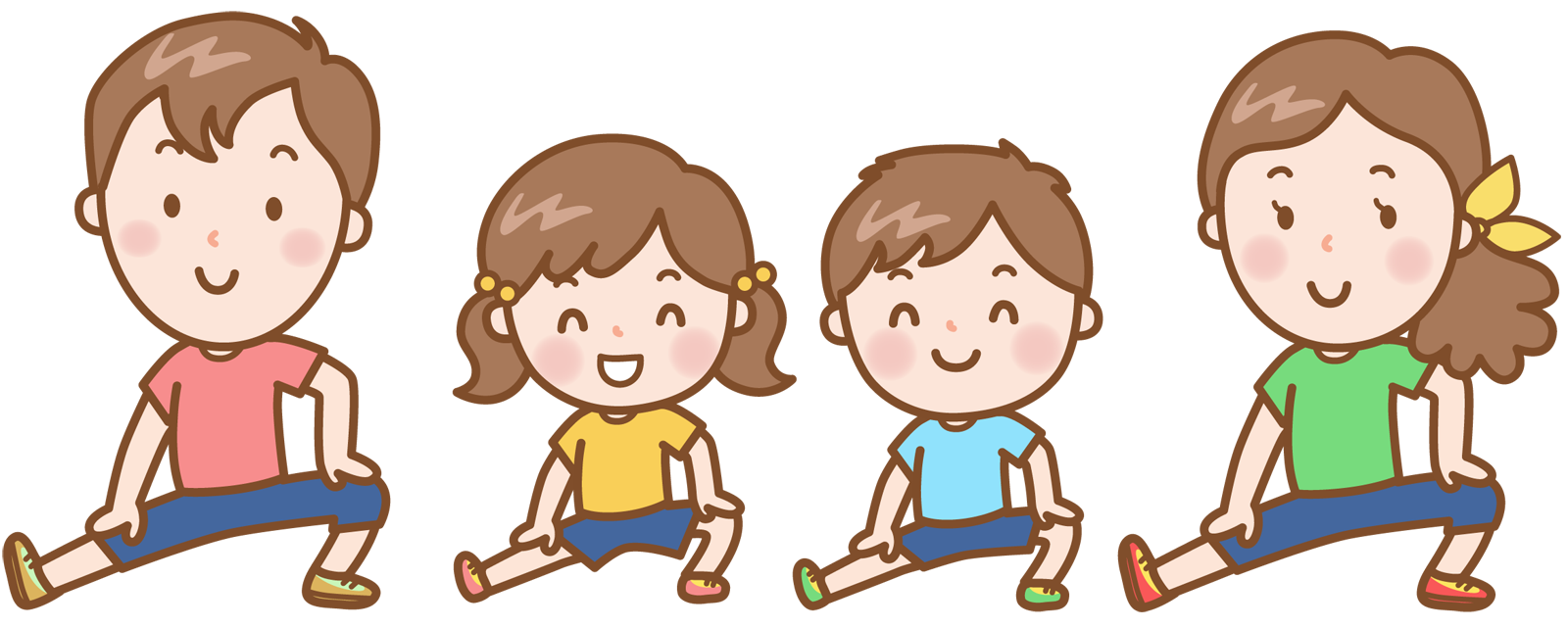 走る前には、ちゃんと足や腕を伸ばす。体を伸ばさないと、けがをしやすいから。