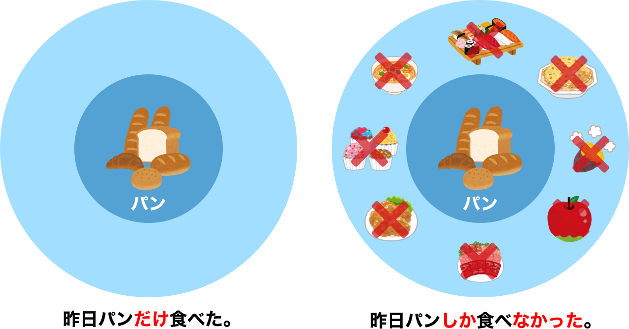 而如果說 「昨日パンしか食べなかった」,則會帶有一種「除了麵包以外什麼都沒吃」的語氣,